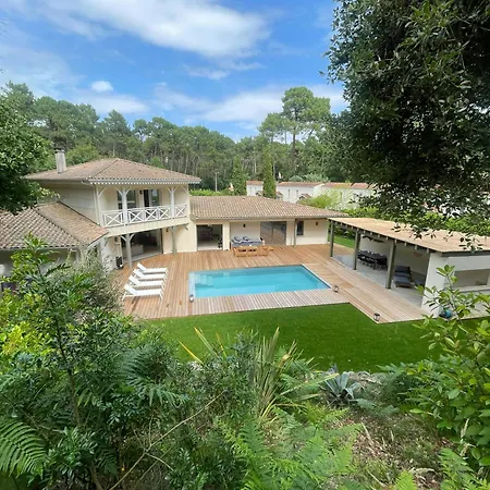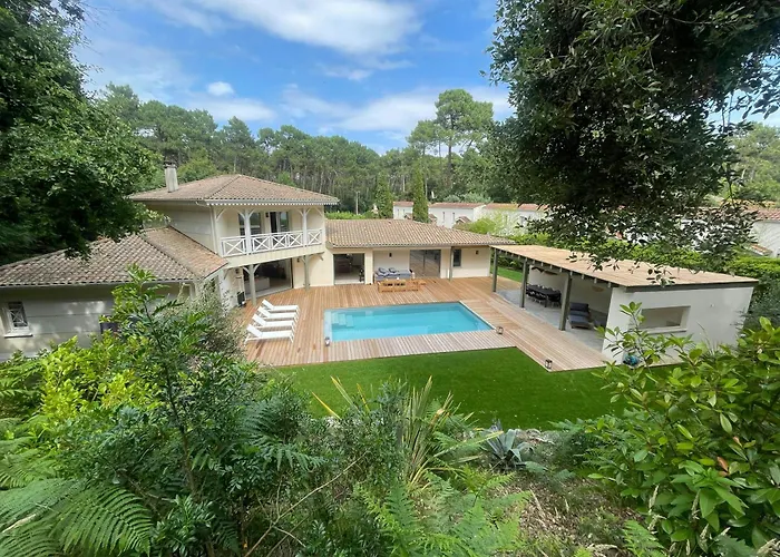 Arcachon şehrinde Eglise Notre-Dame-des-Passes'dan 14 dakikalık yürüme mesafesinde bulunan Contemporary Villa With Heated Pool In Le Moulleau, tam donanımlı mutfak ile konaklamayı sunar.